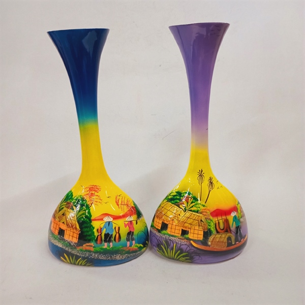 Bình sơn mài bầu cổ cao