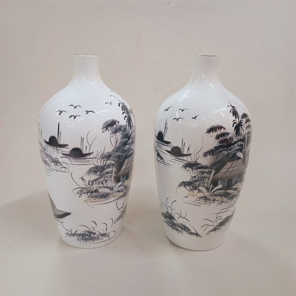 Bình tranh thuỷ mạc sơn mài tranh
